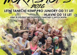 SUMMER WORKSHOPS s TAKTem 2016 je určen juniorům a hlavním. Podrobnější informace o věkovém rozdělení a termínech pobytu najdete na dalších stránkách. Tanečníci si budou moci na místě vybrat lekce z různých tanečních stylů od street dance, hip hop, modern a contemporary a disco dance. Výuku tanečních lekcí zajišťují externí lektoři ze STEELS, PROJEKT AWA, BEETHOWEN D.C., AKCENT Ostrava a TAKT Liberec.